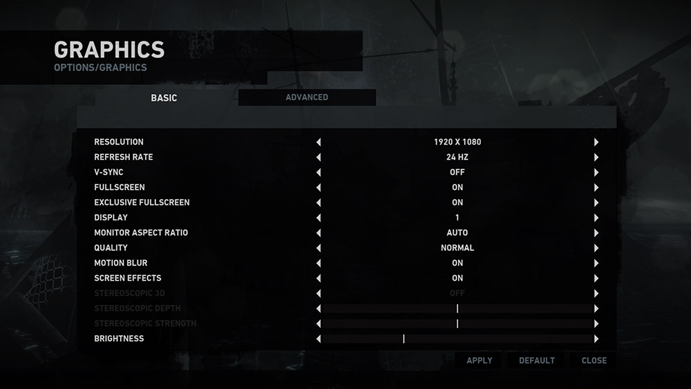 Default: All settings at medium, reflections disabled, anti-aliasing disabled.