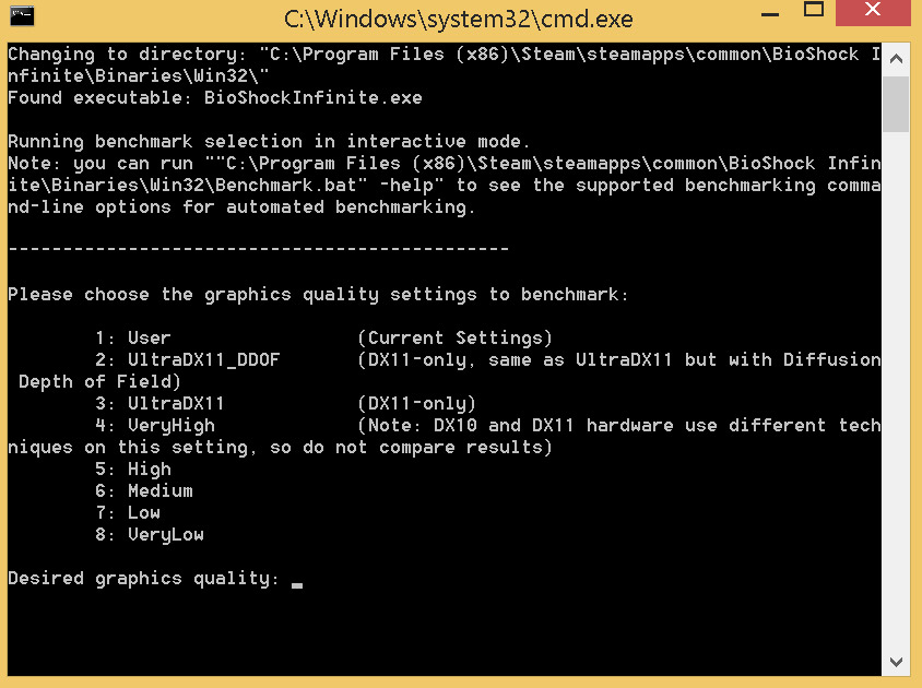 For this we used the built in Bioshock Infinite benchmarking utility, set at “High” and “UltraDX11_DDOF” settings, both at 1080p resolution.