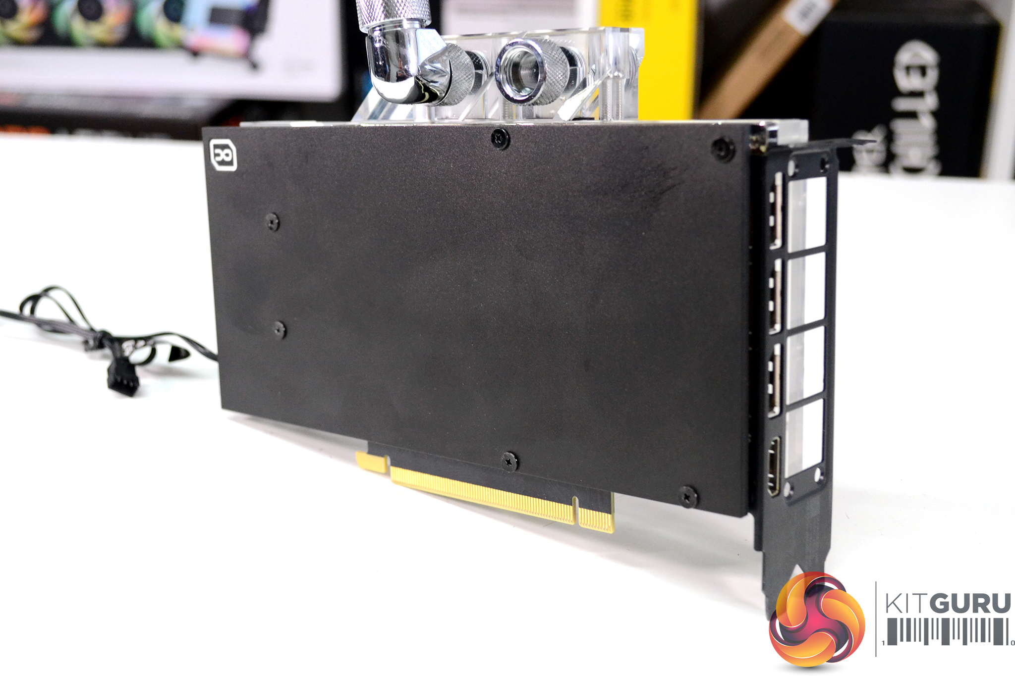 Disassembling the card before installing the water block gives us the chance to take a closer inspection of the board layout. It is interesting to see how compact the graphics card is once the stock heatsink is removed and how heavily populated with components the rear of the PCB is. Removing the stock cooler also significantly reduces the length of the card which creates approximately 80mm extra space inside our Cooler Master NC100 chassis, which is exactly what is needed.
