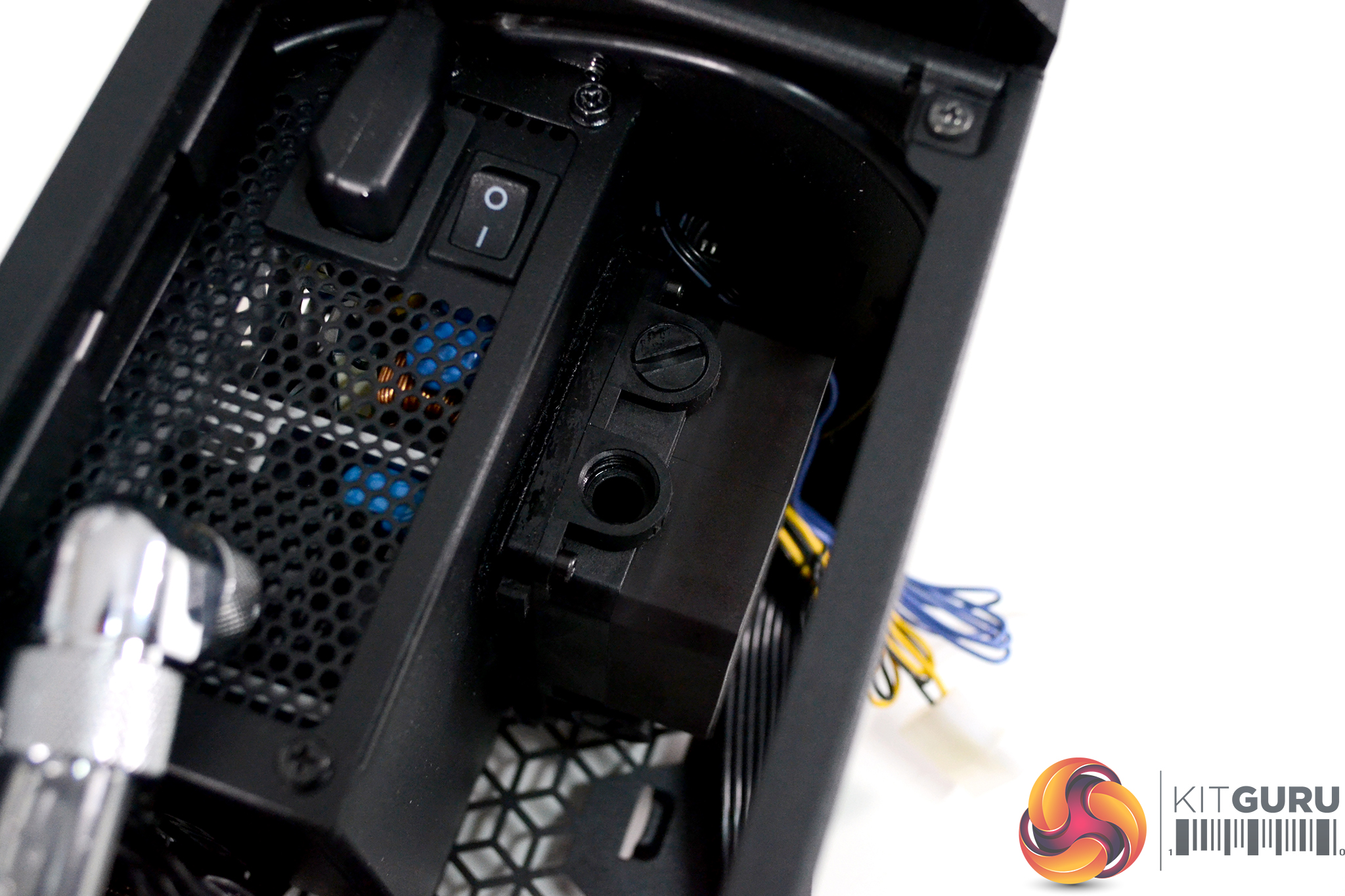 The idea was to hard mount the 1U reservoir to the power supply casing with screws or bolts, but upon closer inspection the power supply PCB is very close to the steel casing which will make this quite difficult. Alphacool supply some self-adhesive velcro mounting pads with the ES Reservoir, I wasn’t expecting much from these but they actually came in very handy, and the pump seems to be securely mounted using this method.