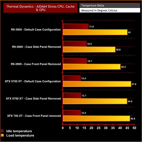 With the charts below, We can compare thermal performance in each given situation. To measure the cooling performance of the system all fans were left to run in the default configuration that was set by PCSpecialist during assembly, to represent how the system would come configured to the customer.