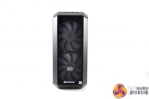 Inside the system is where things get a little more interesting, At the front of the case are two huge 200mm Cooler Master RGB fans configured as intakes, pulling cool air into the system. The RGB lighting for these fans is connected to the motherboard header so will synchronise with the motherboard RGB via the Asus Aura Sync software. At the rear of the case is a black system fan configured to exhaust warm air out of the system.