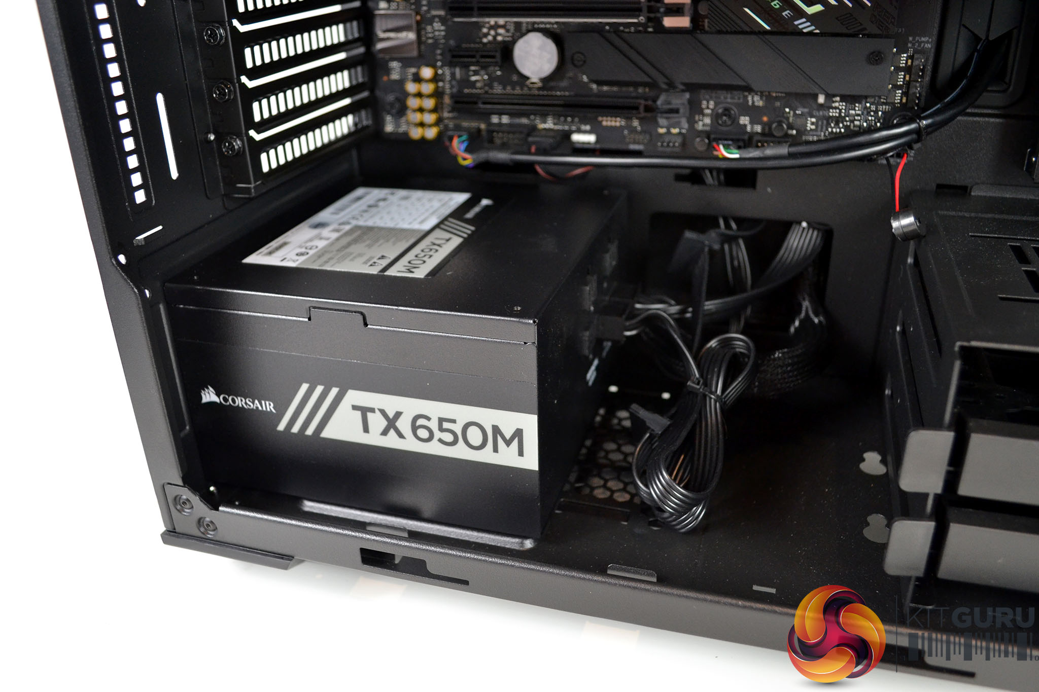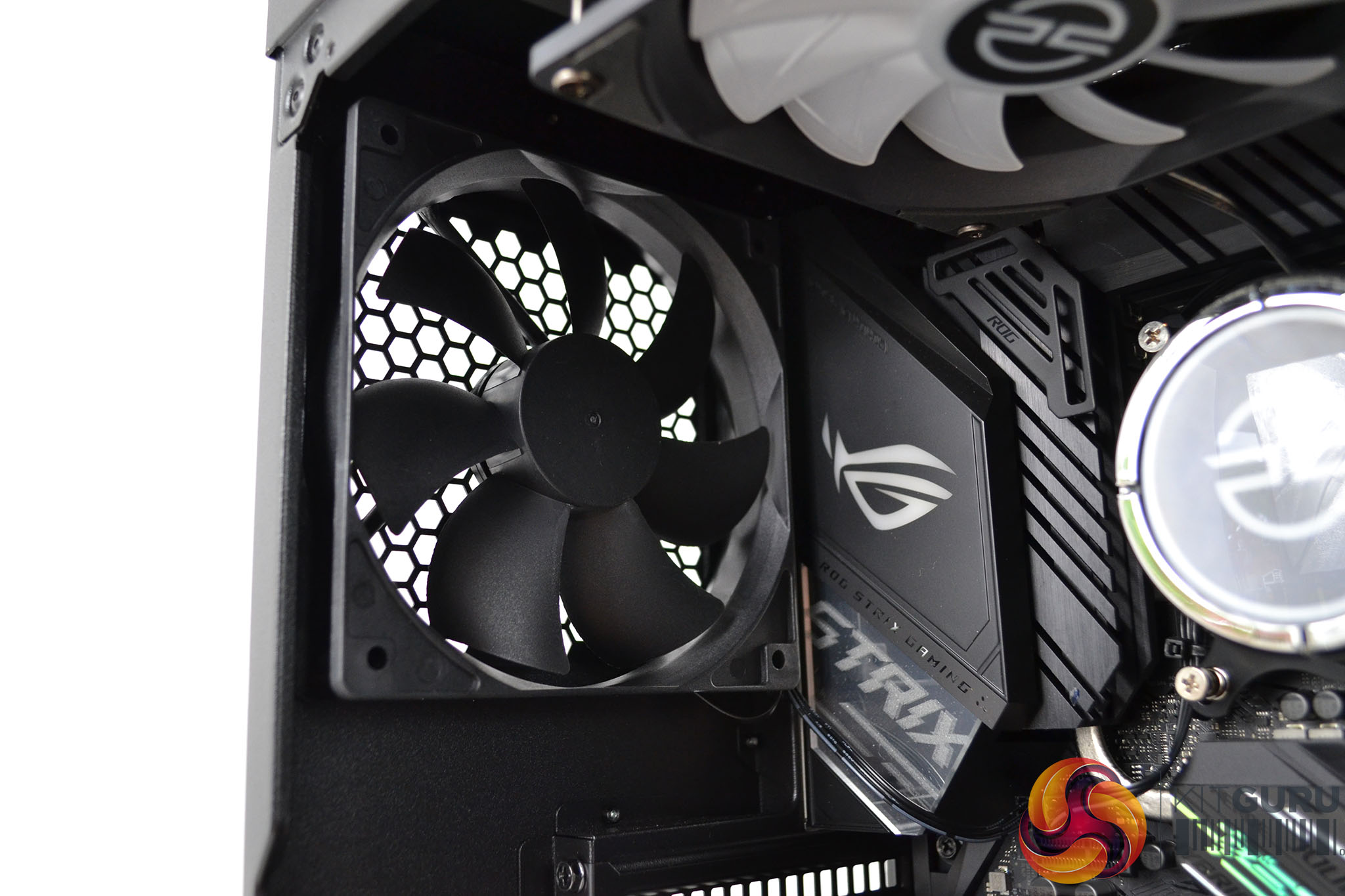 Next to the 3.5-inch HDD cage is a power supply shroud that covers the PSU and cables to keep the system looking neat and tidy. Again, this power supply shroud can be removed simply, a single thumbscrew at the rear holds it in place. Removing the shroud provides unrestricted access to the power supply and makes connecting extra cables to the power supply for future upgrades easy.