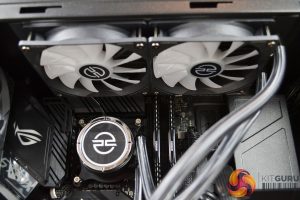 CPU cooling is taken care of by a 240mm all-in-one closed-loop liquid cooler. PCSpecialist label this as a PCS FrostFlow 240 RGB, in actual fact it is a rebranded ID-Cooling ZoomFlow 240X ARGB AIO. A 240mm AIO of this type should be more than enough cooling for the Intel Core i7 10700K CPU running at its stock frequency, as it is in the Vortex S3 system.