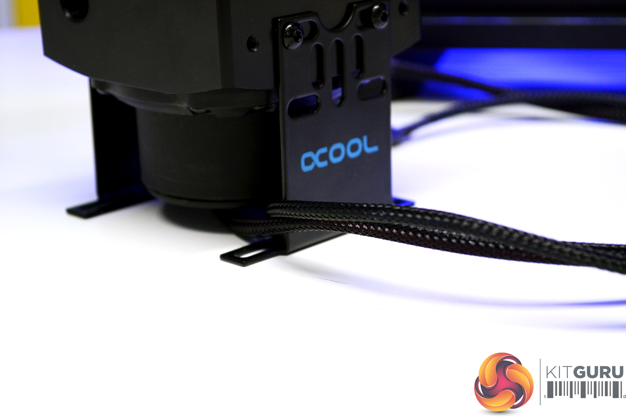 While in the mood for wiring mods, we partially built the system, finalised the layout of the main components then set about modifying other cables. The multicoloured wires coming from the Alphacool pump had to go. To tone these down, we stripped the pump cover off, removed the original white Molex power and four-pin fan header connectors, added some black PET sleeving and some fresh black connectors, now the cables look fit for this system.
