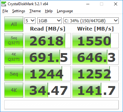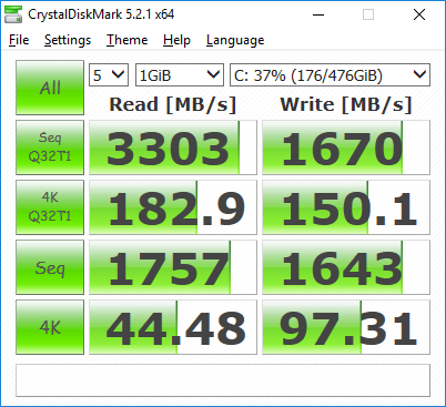 Crystalmark is a useful benchmark to measure theoretical performance levels of hard drives and SSD’s. We are using V5.2.1 x64.