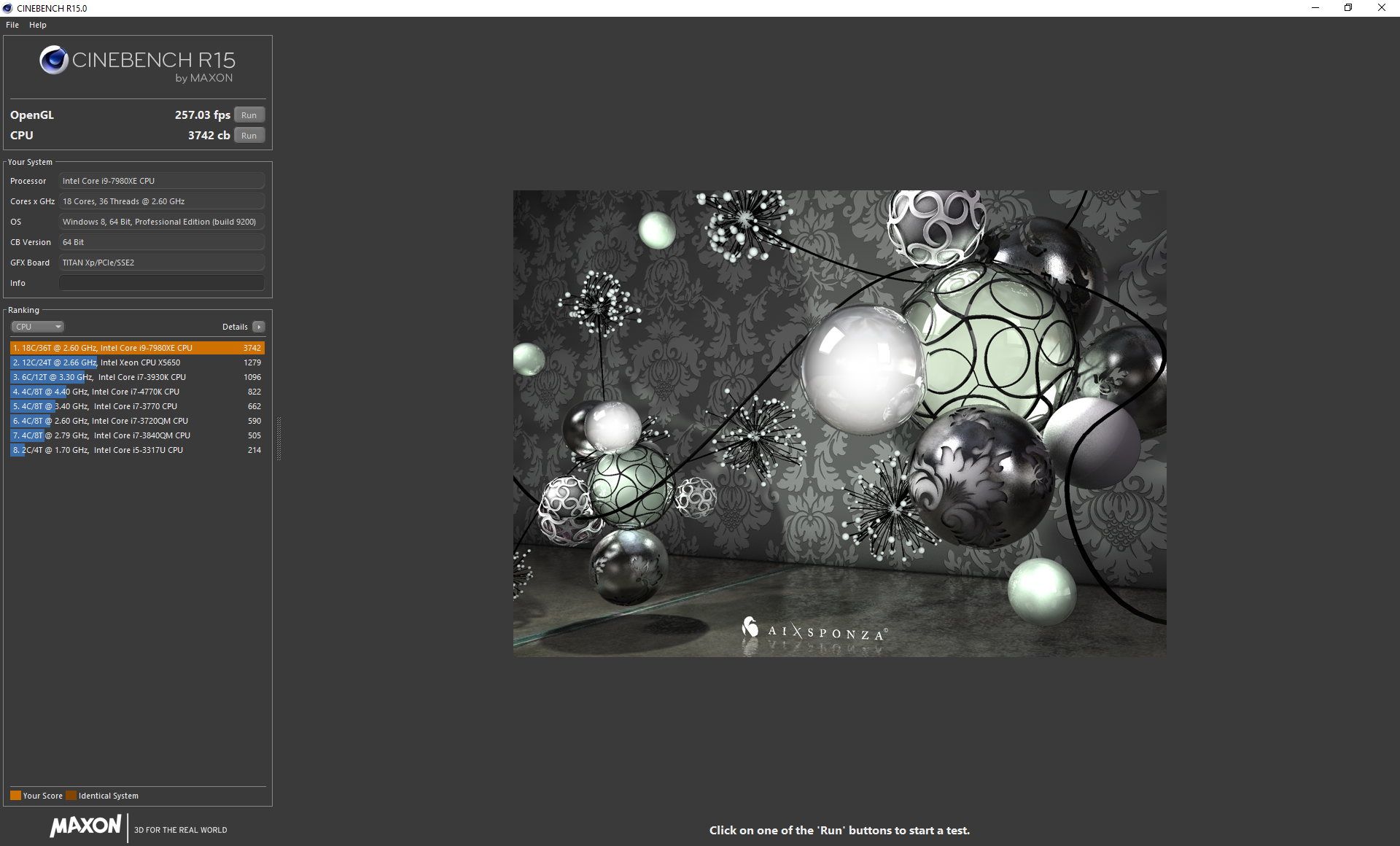 CINEBENCH 15 is a cross-platform testing suite that measures hardware performance and is the de facto standard benchmarking tool for leading companies and trade journals for conducting real-world hardware performance tests. With the new Release 15, systems with up to 256 threads can be tested.