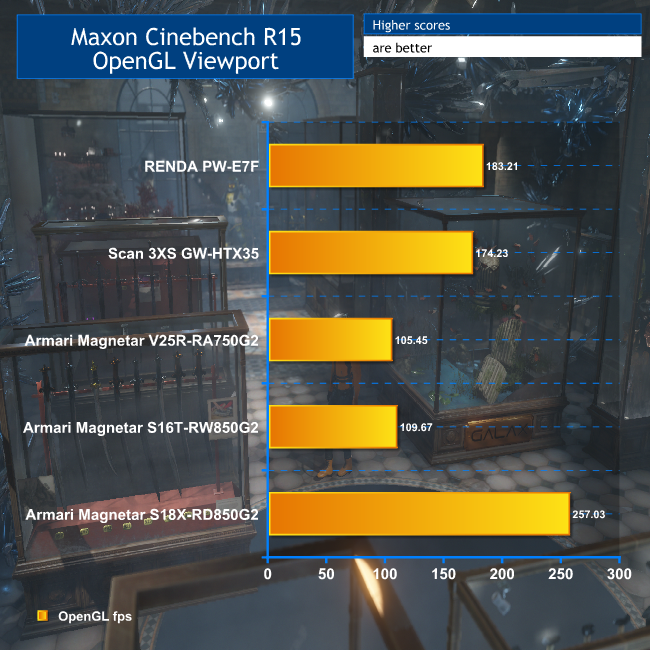 Not such a great story when it comes to Cinebench R15's OpenGL test. The NVIDIA GeForce Titan X wipes the floor with all comers, offering frame rates more than twice as fast as the AMD Radeon Vega Frontier Edition. Next, let's turn to another professional graphics test that is mostly focused on OpenGL.
