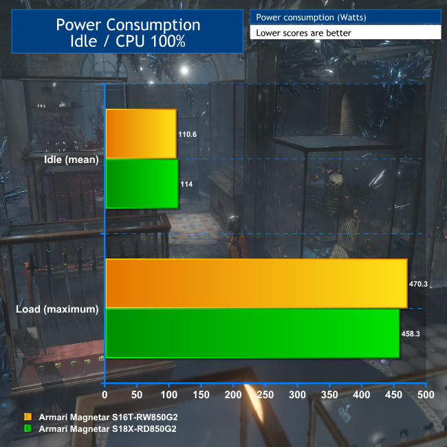 Both systems are fairly similar when idle, with the AMD system just a couple of Watts less. Under load, the Intel system consumes 3 per cent less power. That's not a huge difference, but you are also getting through the render faster on the Intel system so this is a win for the Core i9 7980XE.