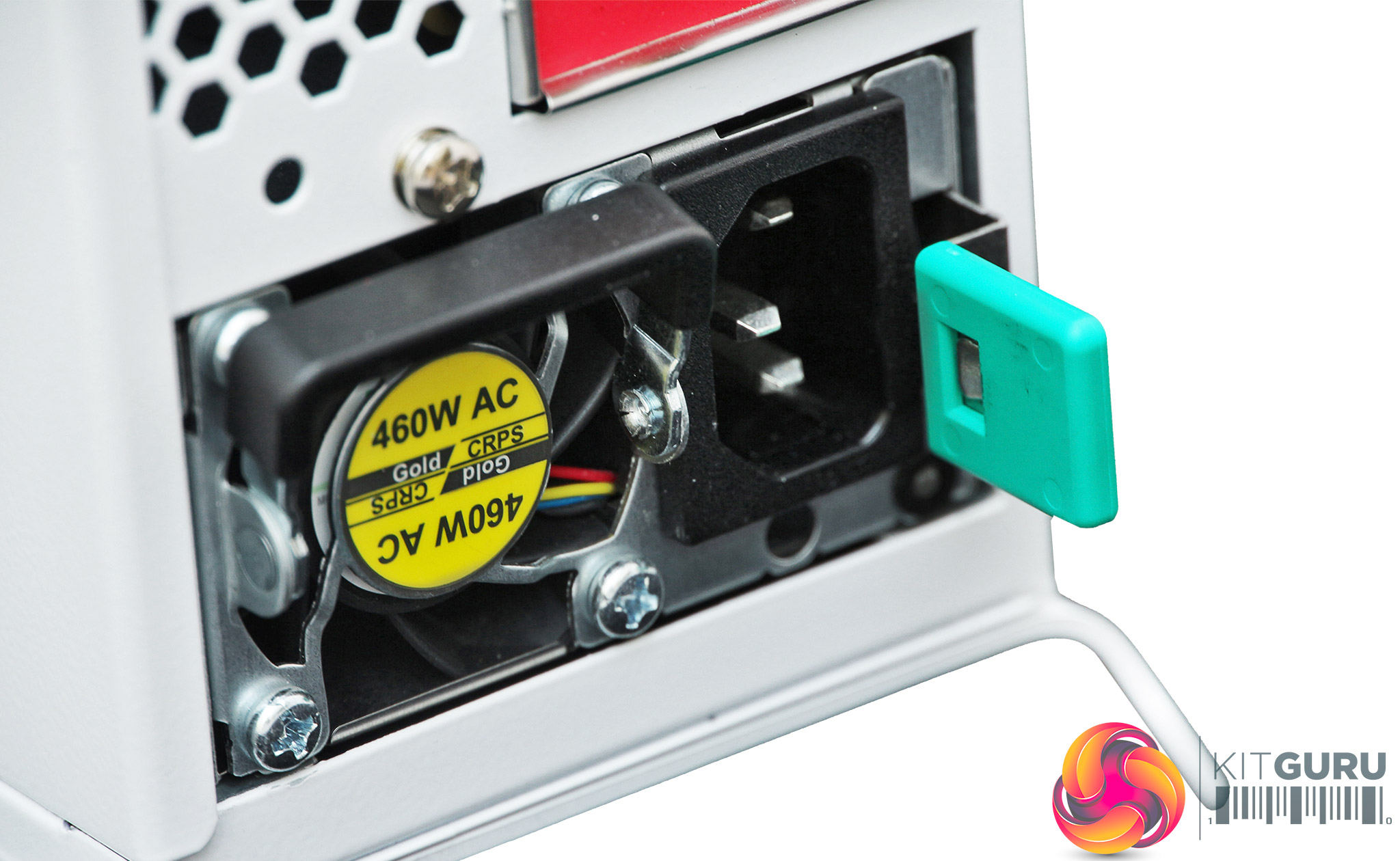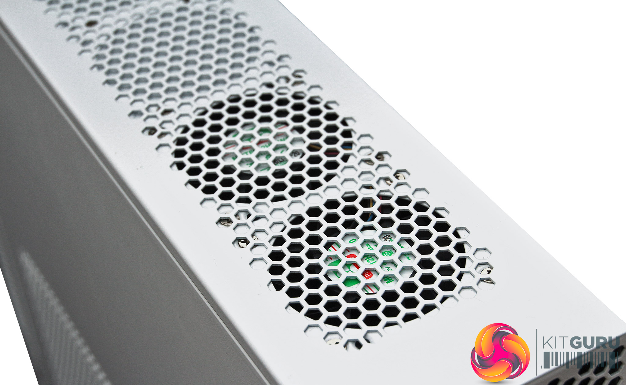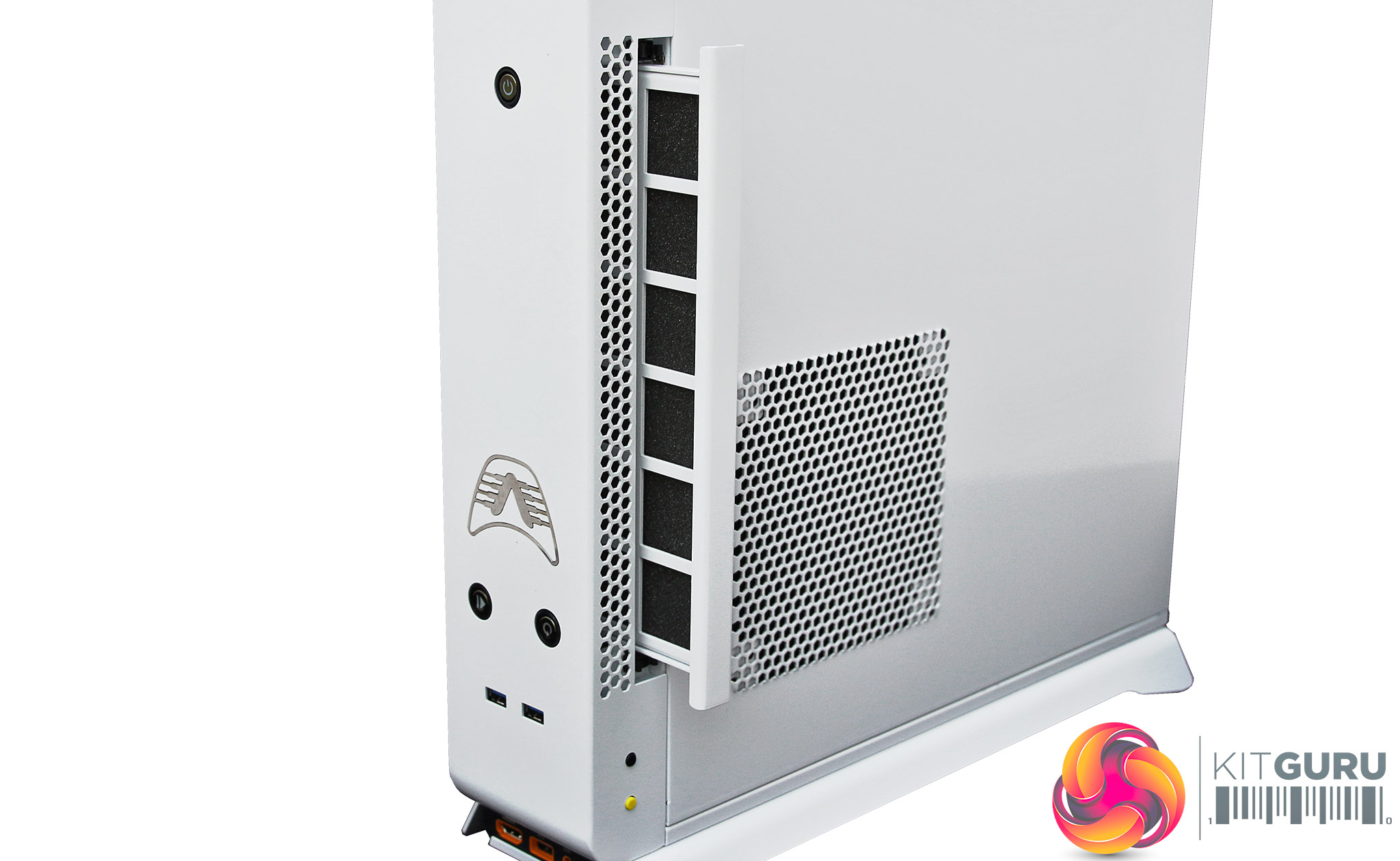 Fans on the top draw air from the graphics cards underneath and there's a pop-out filter on the front that can easily be cleaned to ensure optimum airflow. The PSU is not hot-swap, because obviously there's only one of them (note that the picture above shows the 460W version, not the 750W we were sent). But it can easily be slid out and replaced without having to take the side panel off. Removing the side panel shows just how tightly packed the components are inside.