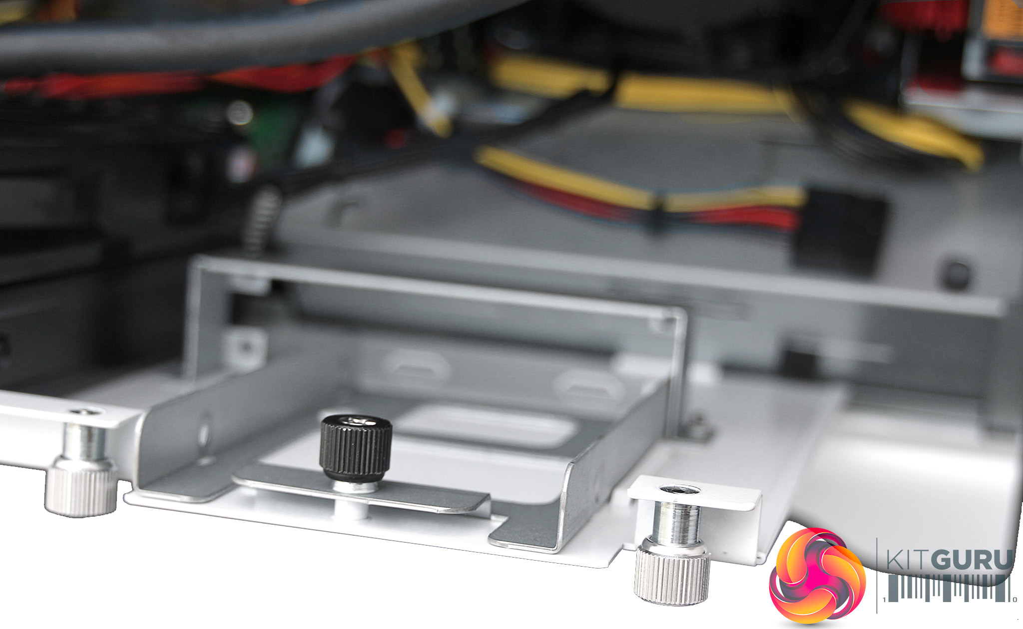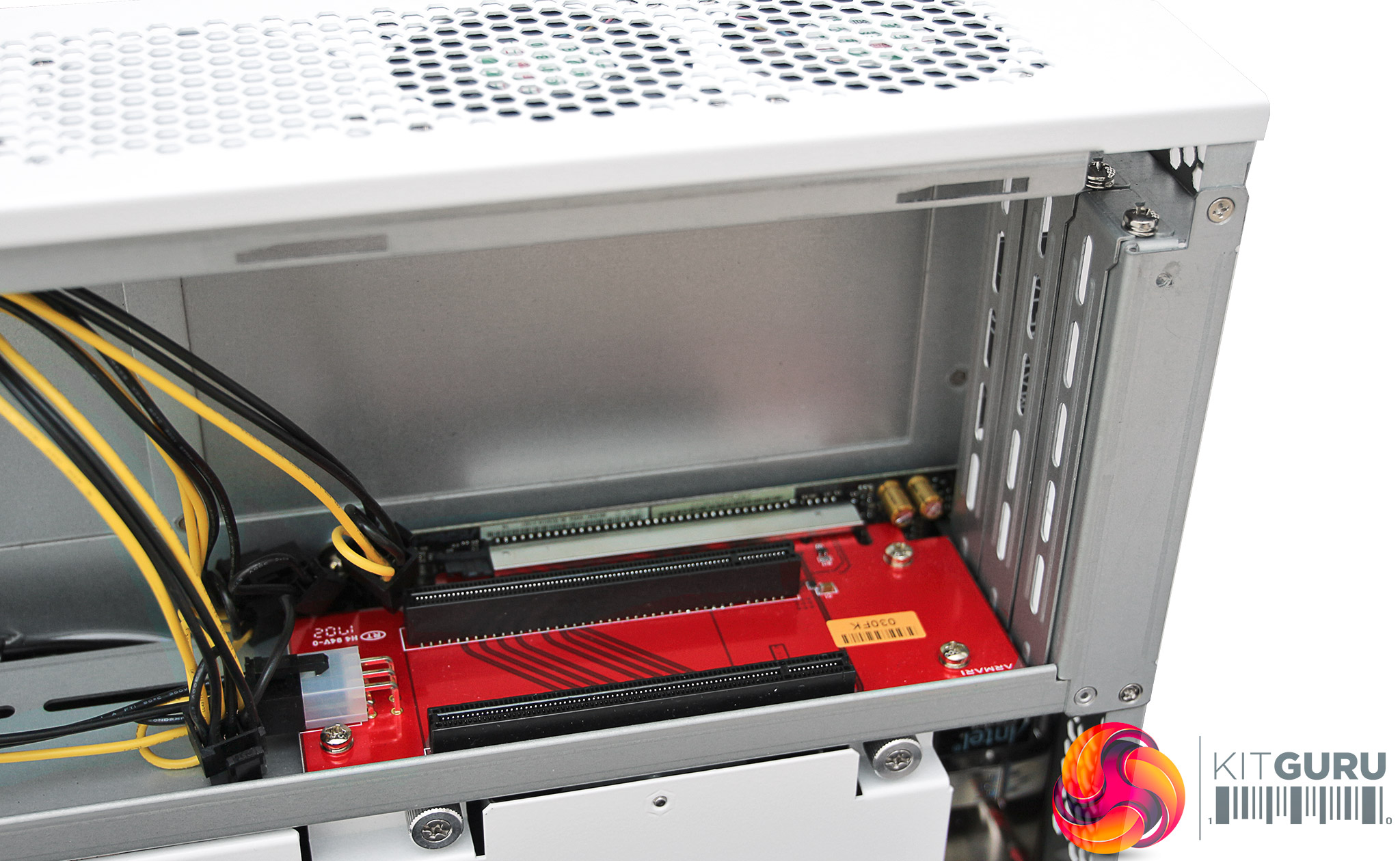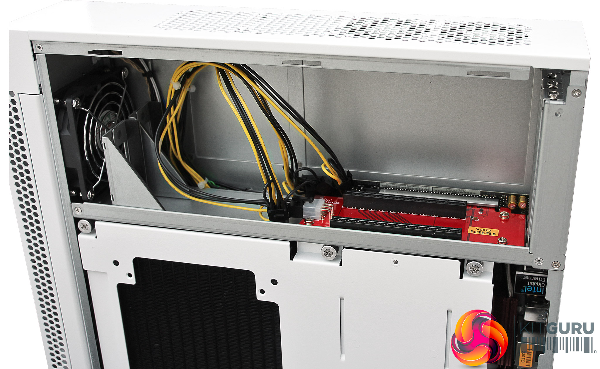 Fans on the top draw air from the graphics cards underneath and there's a pop-out filter on the front that can easily be cleaned to ensure optimum airflow. The PSU is not hot-swap, because obviously there's only one of them (note that the picture above shows the 460W version, not the 750W we were sent). But it can easily be slid out and replaced without having to take the side panel off. Removing the side panel shows just how tightly packed the components are inside.