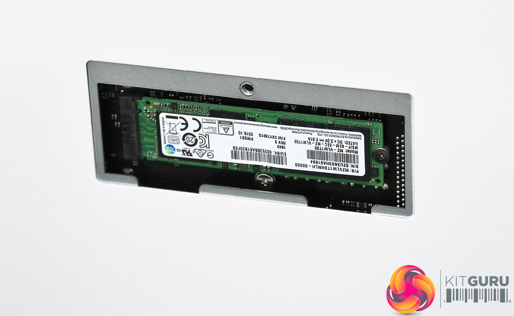 The chassis supports up to three 2.5in SATA drives internally, despite the small size, but Armari has only supplied one storage device with this system, connected to the M.2 NVMe PCI Expres x4 slot. In production systems, this will be a Samsung PM961, which is a very quick drive offering 2,800MB/sec reads alongside 1,600MB/sec writes. But this wasn't available for our sample so a similar OEM drive was included. In the final production version of the V25R (using an ASRock rather than a Biostar motherboard), the M.2 drive will be accessible from a small side panel.