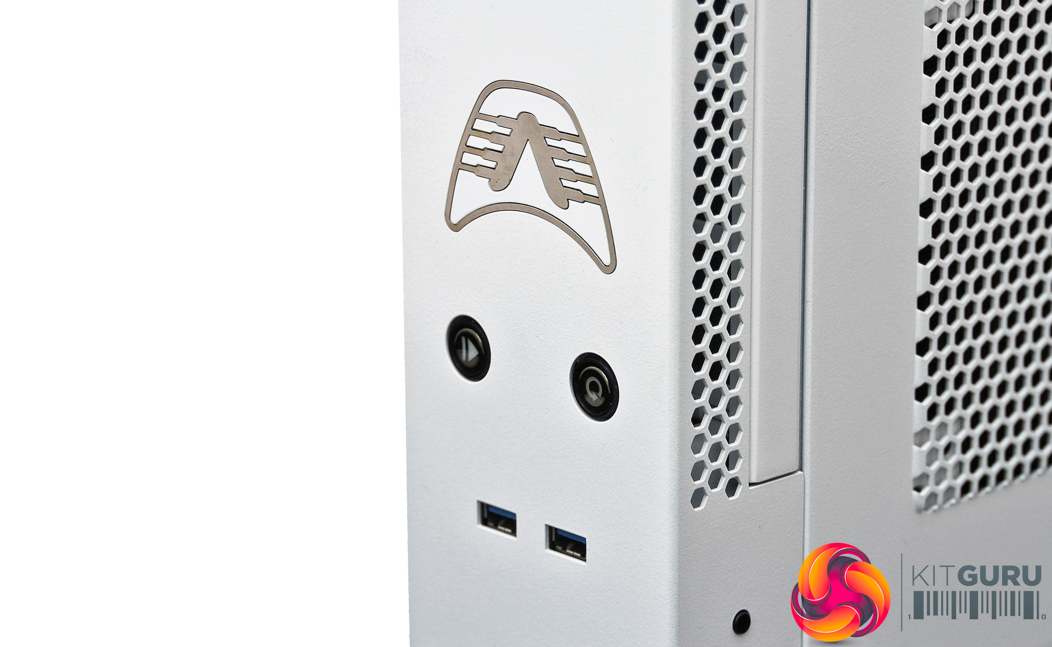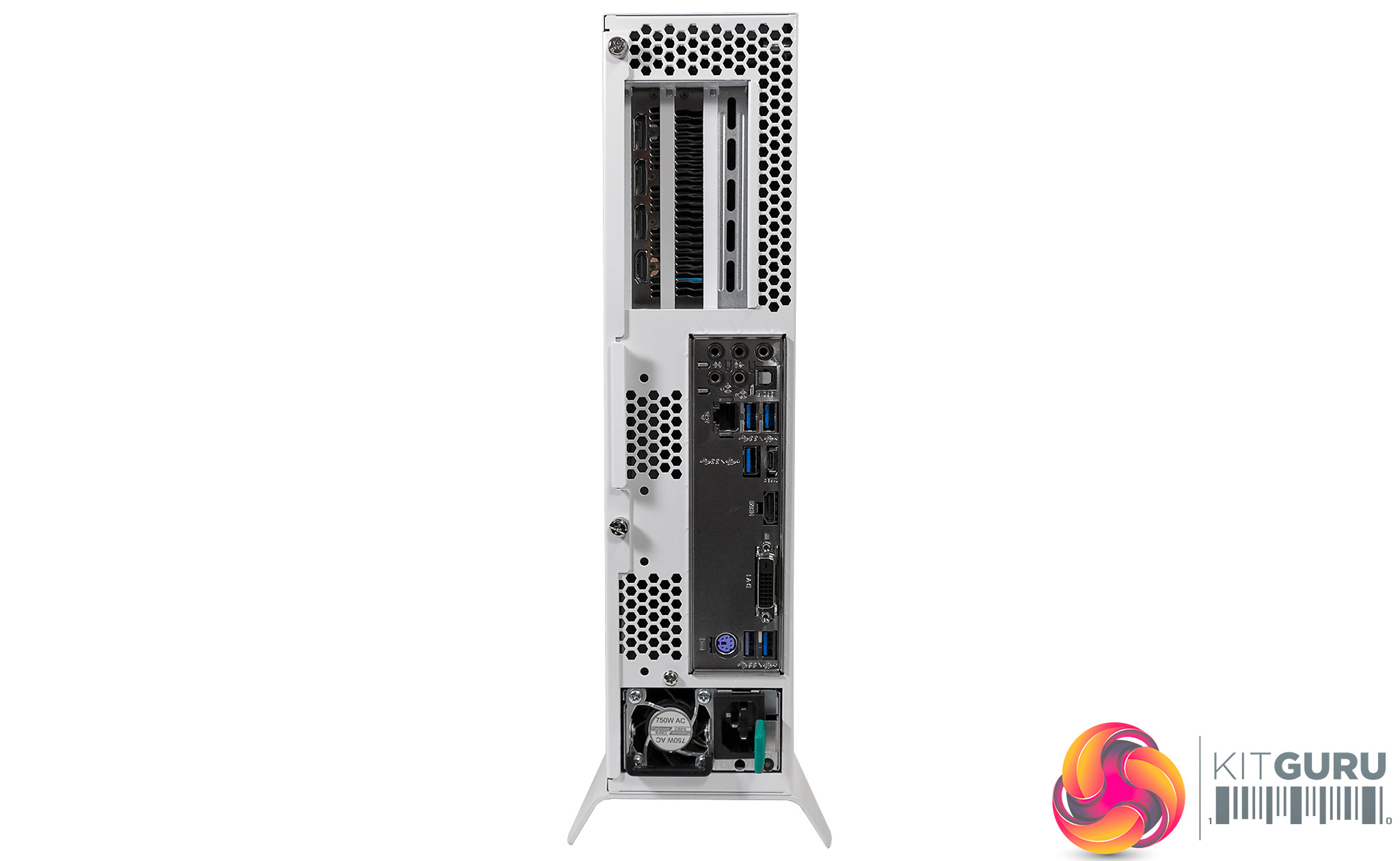 The Armari Magnetar V25R-RA750G2 uses a really deceptively small chassis. The 400mm depth and 360mm height are fairly normal for a midi-tower, but the system is just 88mm wide – about half as much. However, unlike most small form factor systems, there's a 750W power supply inside and carefully designed cooling, so regular workstation components can be used. The glossy white finish is also rather unique.