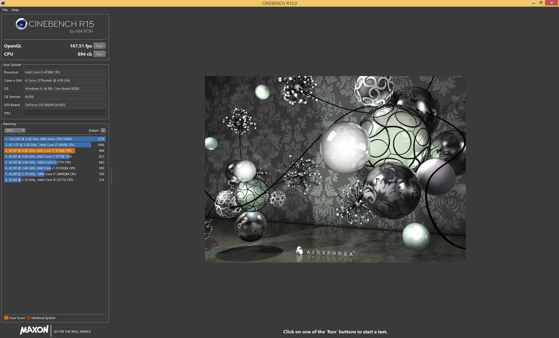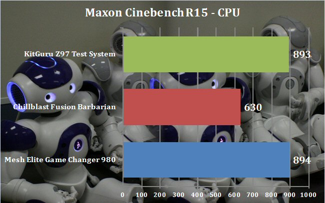We used the ‘CPU' test built into Cinebench R15. Unsurprisingly, the Mesh system achieved almost the same result as our reference system. Since they have the same processor, and this test primarily tests CPU performance with very little effect from memory or any other components, the result should be the same. It's a commendable score for a quad-core processor, again showing the abilities of the Intel Core i7-4790K.