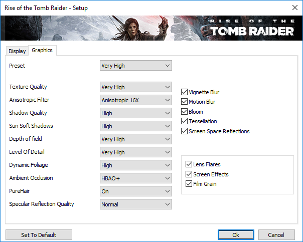 We used an initial Full HD (1,920 x 1,080) resolution and graphics set to “Very High” quality with the Rise of the Tomb Raider built-in benchmark. We then set the resolution to 1,440p (2,560 x 1,440) but left all the quality settings the same.