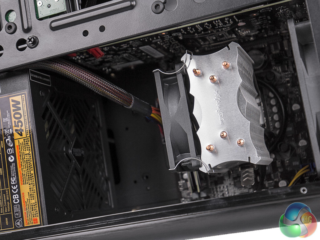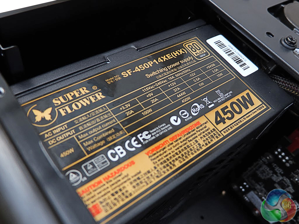 The chassis takes the now fairly common strategy of positioning the motherboard “upside down”, so the ports are at the bottom, with expansion cards above, although the power supply remains at the top. The PSU is a relatively modest 450W unit from Super Flower, which will be perfectly adequate for the components included, and considering that there isn't much option for major upgrade either.