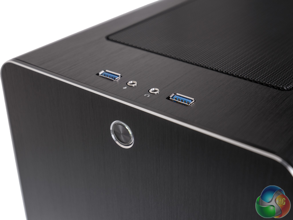 The Titan Neutron is built into a Raijintek Styx Classic chassis. This is a classy-looking case with an unfussy appearance. There are no external bays at the front, with the solid metal fascia broken only by the power switch at the top and logo at the bottom. A pair of USB 3 ports and audio minijacks sit on the top front edge, with a ventilation grille taking up the majority of the top.
