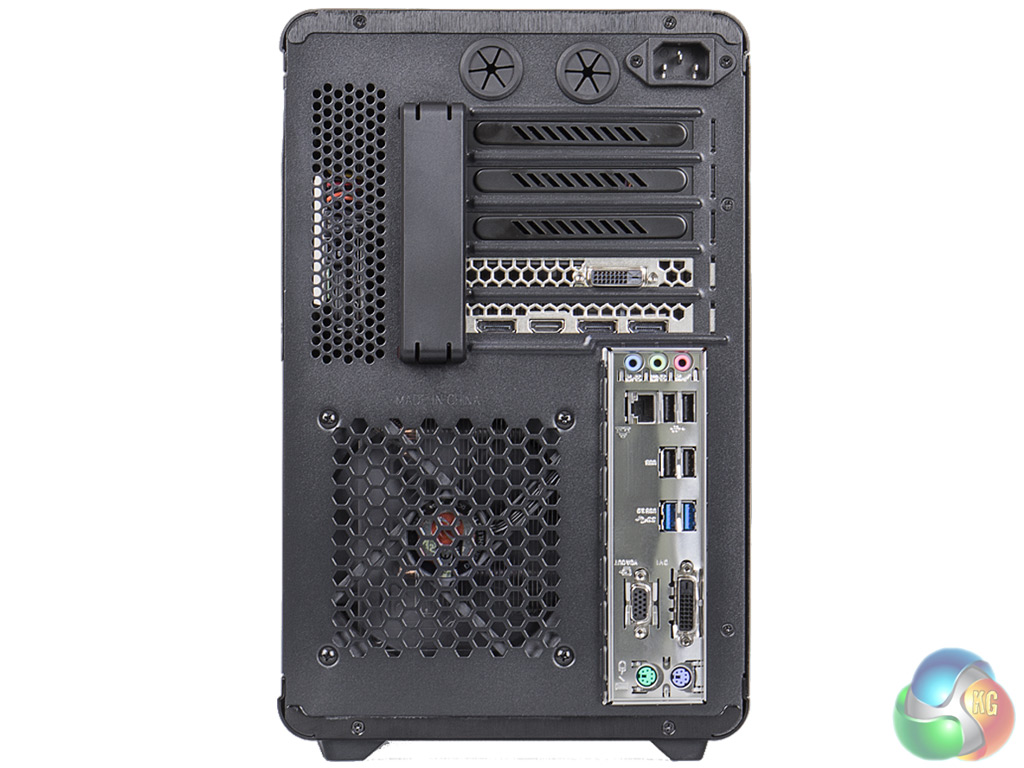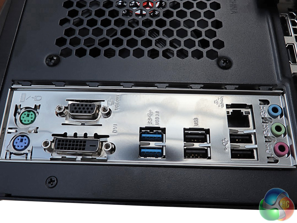 Aside from these audio ports, the back panel sports four USB 2.0 ports and two USB 3.0, and a single Gigabit LAN. There's DVI and VGA for the processor's on-board graphics (not in use for this system), plus PS/2 mouse and keyboard.