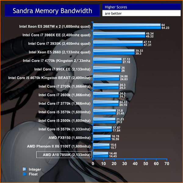 Arithmetic scores are what we would expect for this processor, with a reduced integer but better floating point arithmetic than the MS-Cube WS's Core i5. Memory bandwidth from the Corsair DIMMs is also on par for the dual-channel configuration and frequency.