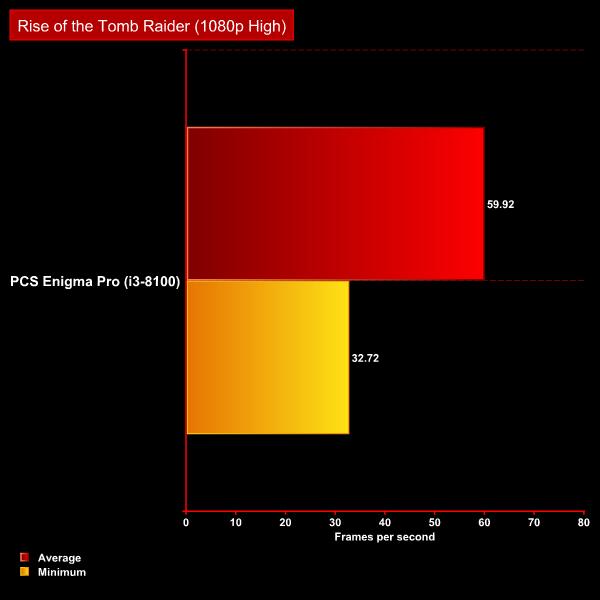 The Enigma Pro found Rise of The Tomb Raider harder going than Ashes of the Singularity. The system’s good average and playable minimum scores suggests that in some games a High 1080p setting is where this system will find its peak performance.