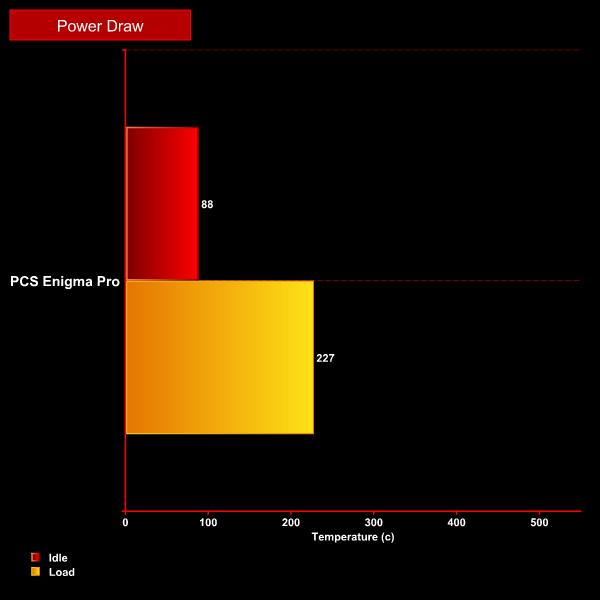 Installed in this system is a Corsair VS-550, so the load power draw of 227W is easily handled. There’s room for expansion here too.