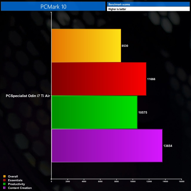 Next, we have PC Mark 10 which gives us an overall picture of how the system performs. While we don’t list any comparisons here, it’s a great way to test your own system and see how it compares to this prebuilt.