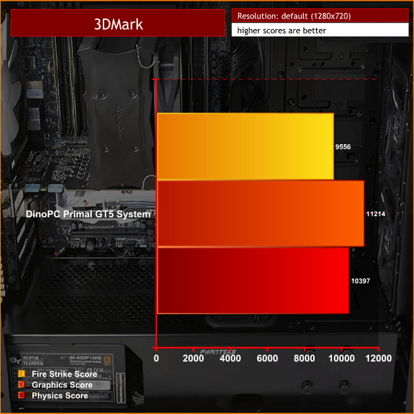 We ran the DinoPC Primal GT5 through a suite of tests including PC Mark 8, 3D Mark, Thief and Grand Theft Auto V where we ramped the quality settings up high using 1920×1080, but no MSAA.