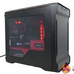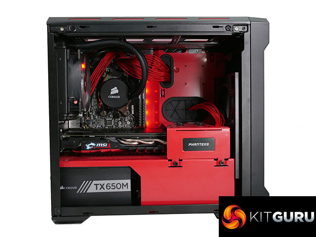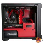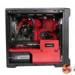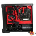 Balanced against that we have the cosmetic appeal. Black and red is a classic colour combination and the Phanteks Enthoo Evolv ITX case looks superb. We love the way that DinoPC has topped off the cosmetics with cable extensions that look good while keeping the mess out of sight at the rear of the case.