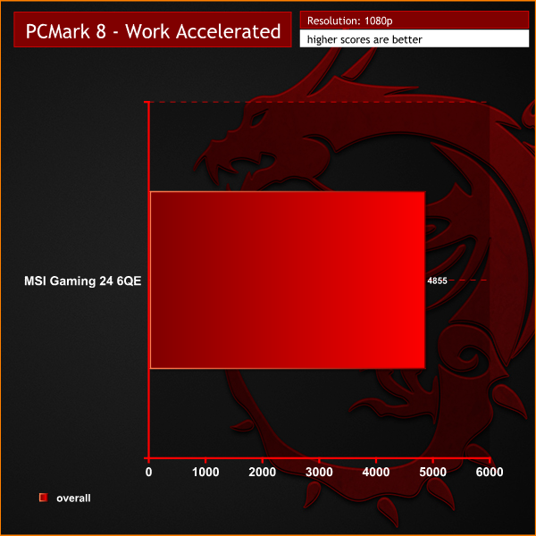 MSI Gaming 24 6QE handled PC Mark 8, 3D Mark and an array of games with a fair degree of success. Naturally we used a screen resolution of 1,920 x 1,080 for testing as that is the setting of the IPS panel and we found it pushed the graphics chip to the limit. With image quality settings set to High the frame rate in games typical landed in the mid-30's fps which wasn't entirely satisfactory.