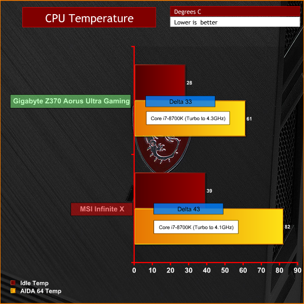 We noted in our video that the Core i7-8700K was running at 4.1GHz on all cores where we would expect to see 4.3GHz. Our best theory is that the VRMs on the motherboard are unable to handle the i7-8700K at full load and the tiny heatsinks on the VRMs only make matter worse.