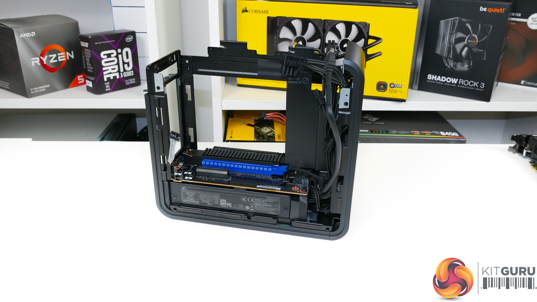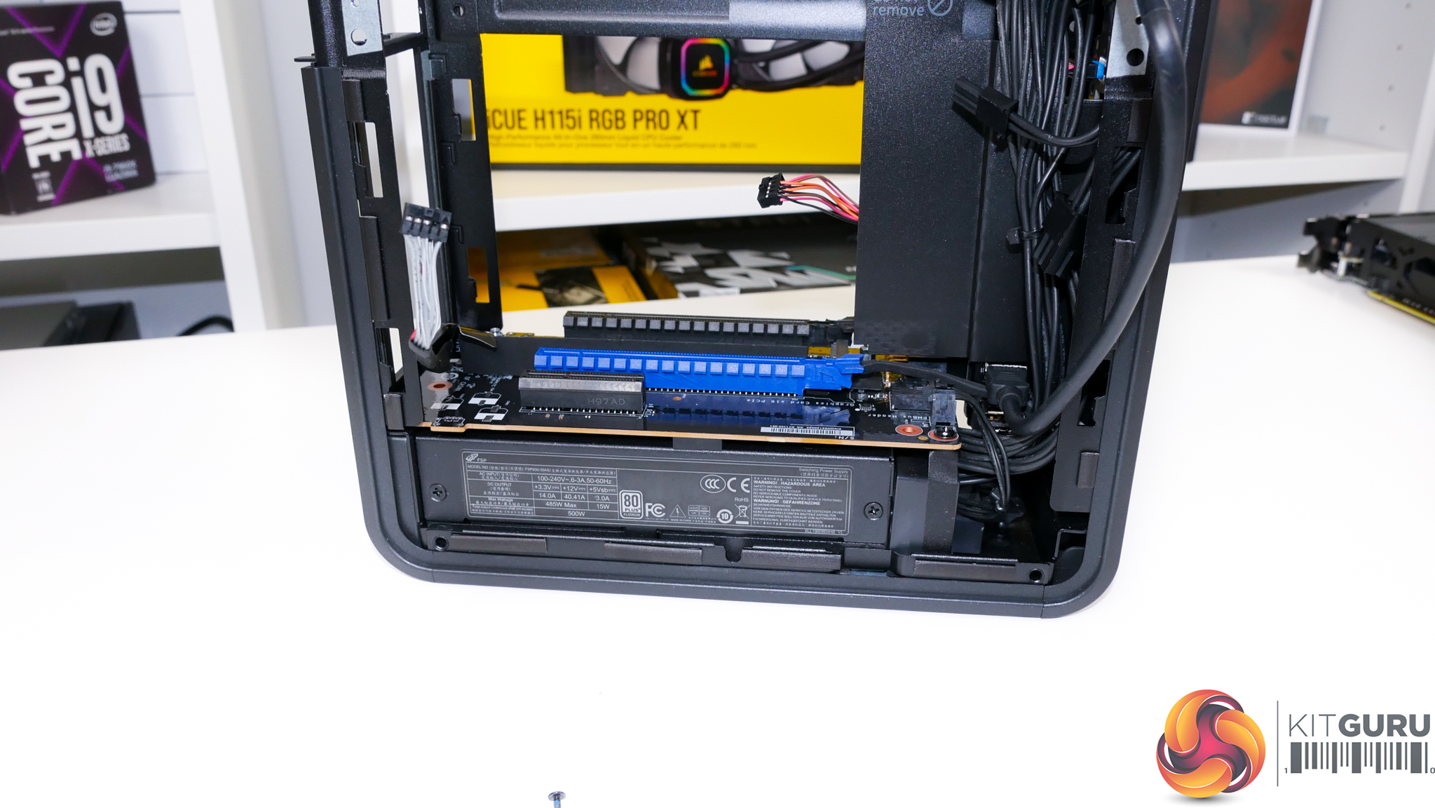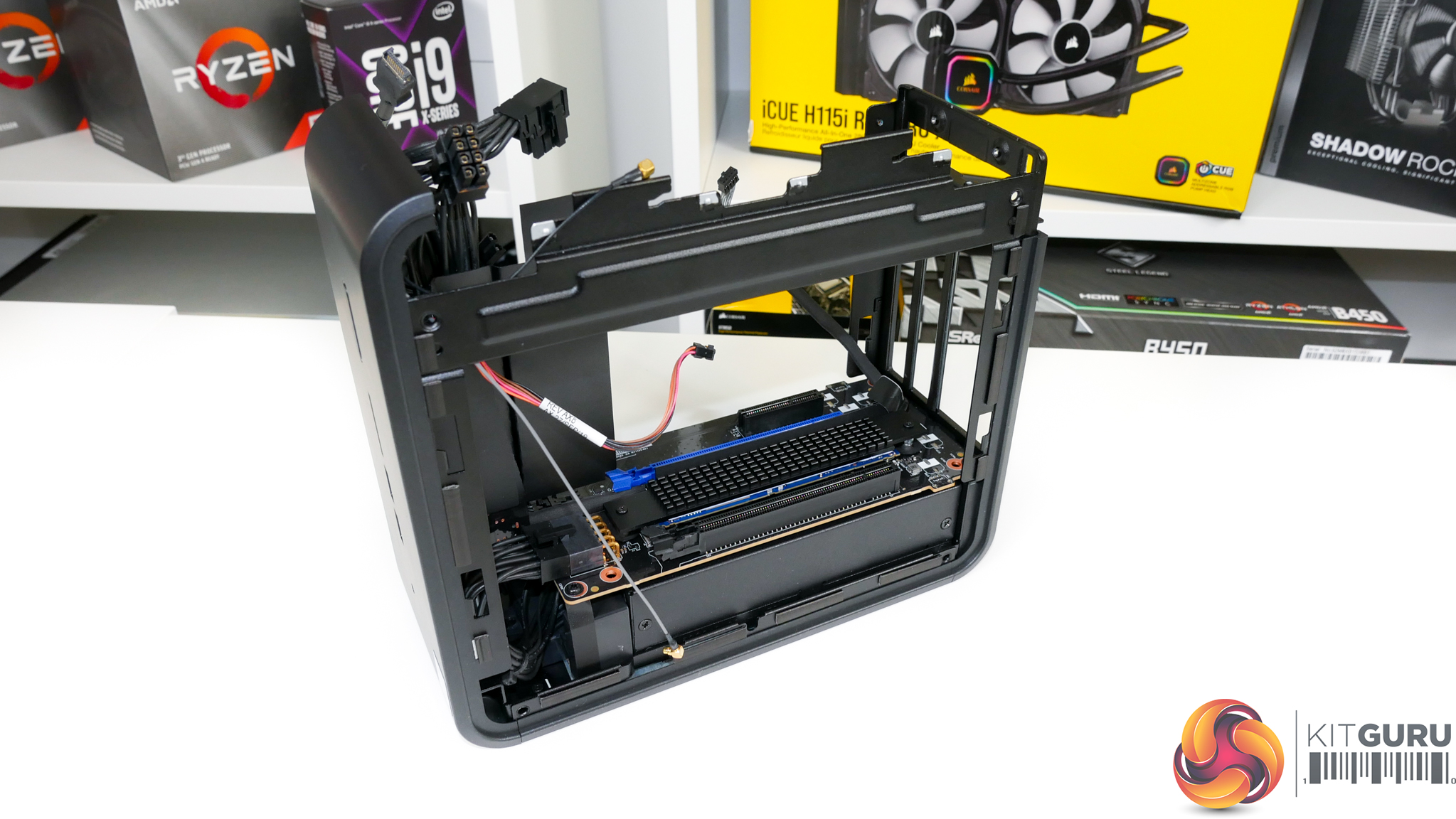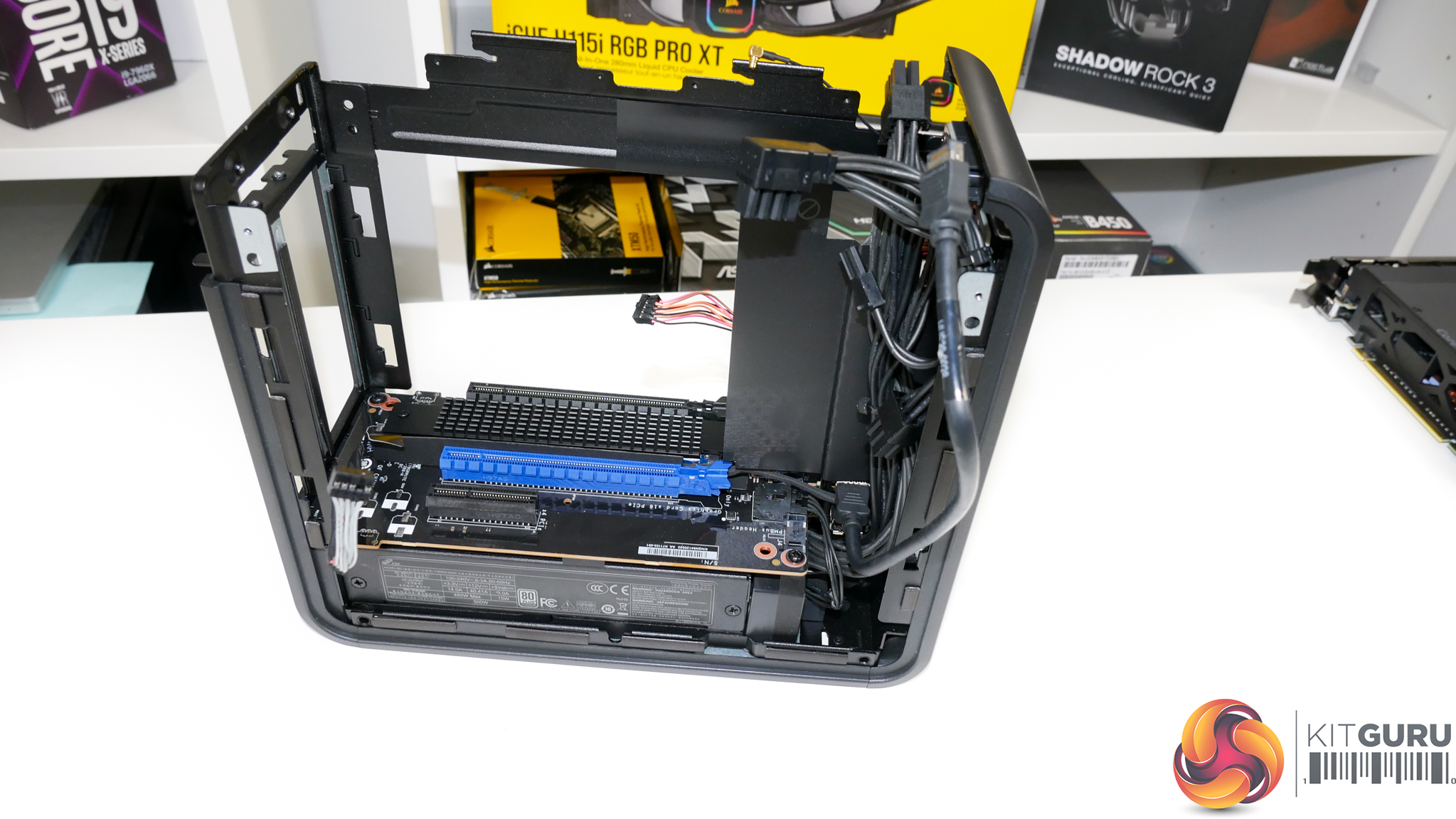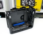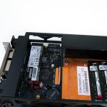 Cooling is run from an in-at-the-side and up-through-the-roof approach using the dual 80mm, 15mm-thick roof-mounted exhaust fans. Plenty of fan speed control is available through the UEFI and temperature sensors onboard.
