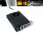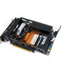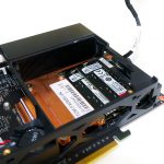Graphics cards up to eight inches long can be installed in the Intel NUC 9 Extreme chassis. Our unit was supplied with the most powerful graphics card that physically fits – the ASUS Dual RTX 2070 Mini. A single 8-pin PCIe power connector from the PSU provides current to the graphics card.