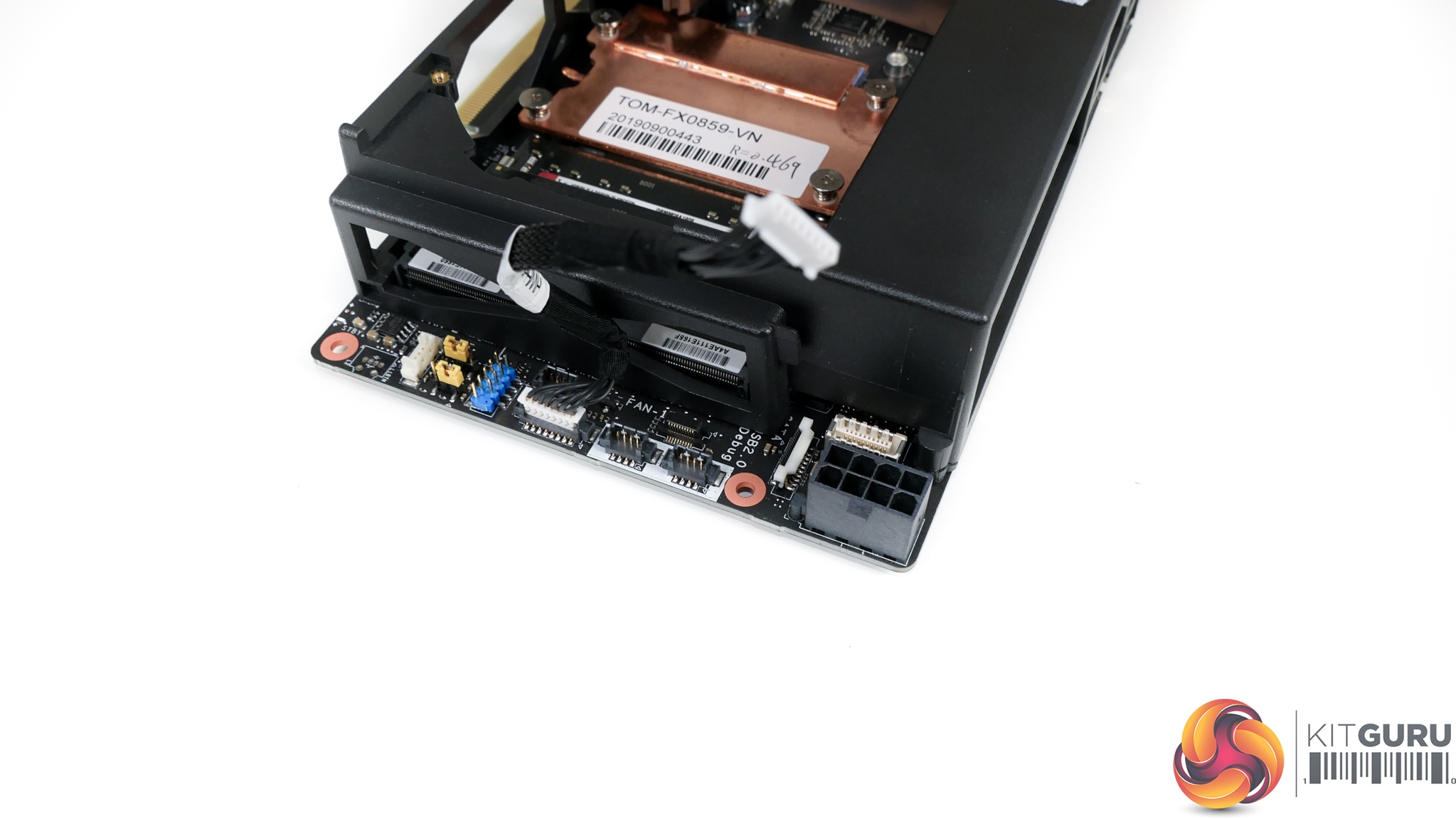 Cooling the CPU and VRM is a vapour chamber unit alongside an 80mm fan. Unfortunately, this fan backs directly onto a graphics card PCB – it would have been smarter to turn it the other way. Thankfully, there is an air gap sufficient for the fan to at least not be fully choked.