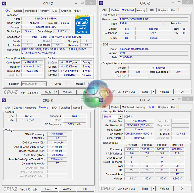 - Intel Core i5 4690K overclocked to 4.4GHz.