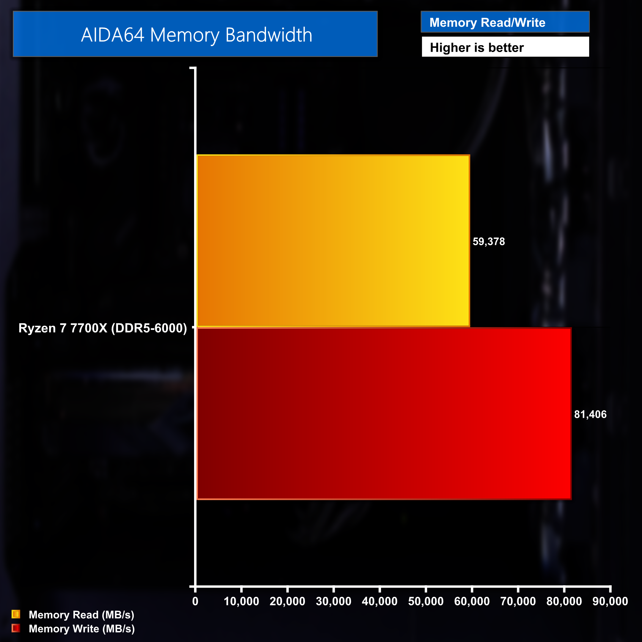 AIDA64 reveals memory read performance 59,378MB/s and write performance of 81,406MB/s when testing the Corsair Vengeance DDR5 6000MT/s memory found in the AWD-IT Erebus.