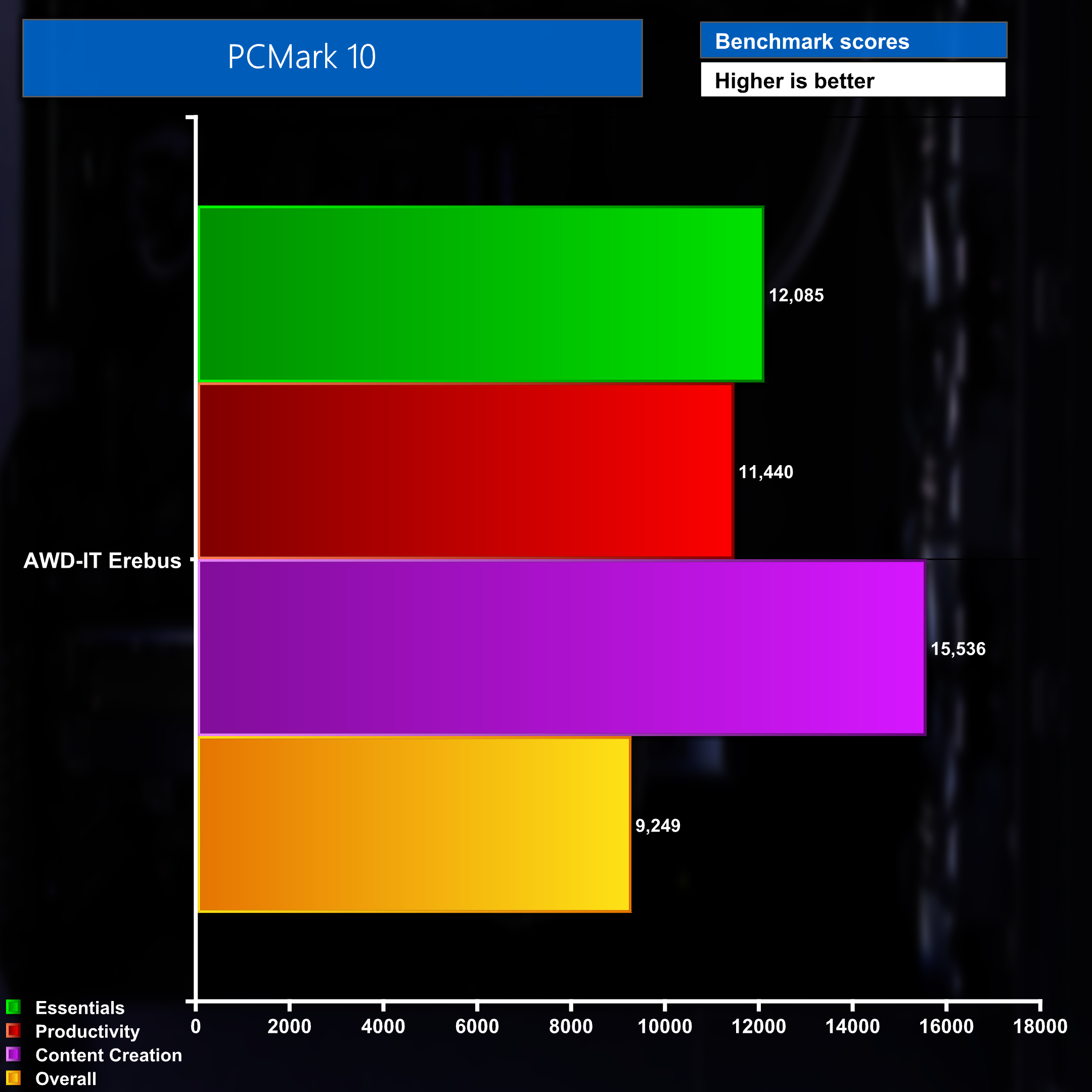 PC Mark 10 tests the overall and general performance of the system – with the content creation category being a particular highlight due to the GPU found in the system.