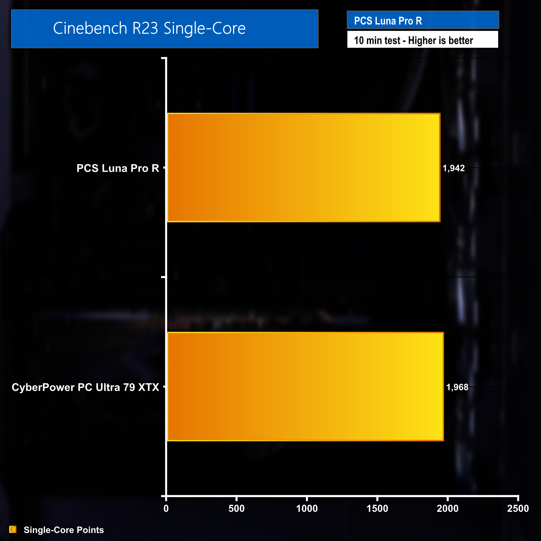 Synthetic benchmarks highlight the systems overall CPU and GPU performance and when taking the price into consideration really highlight the value on offer from PC Specialist. Comparison data was used from the recently reviewed Ultra 79 XTX prebuilt from CyberPower PC, a system which costs almost twice as much. This just further emphasises how well the Ryzen 7 7700X and RTX 4070 perform for the price. Figures were respectable across the board, with the single core Cinebench r23 results in particular showing that the CPU found in Luna Pro R is still more than capable of performing when it matters.
