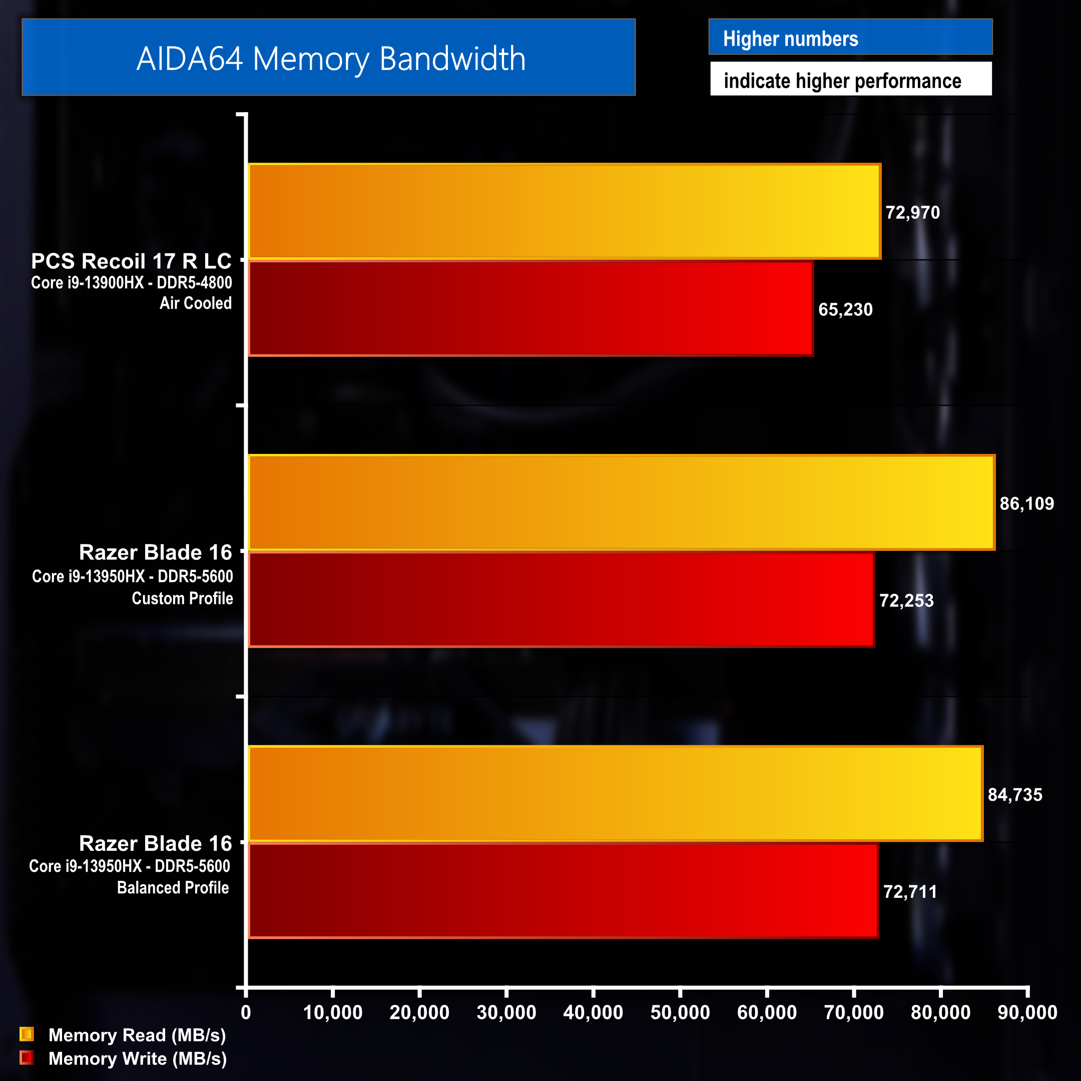 Synthetic benchmark results were similar to the recently reviewed Recoil 17 R LC from PCSpecialist. The Intel CPU found in the Razer Blade 16 provides better single core performance and falls behind in multi threaded workloads irrespective of the Core i9-1950HX being a technically superior CPU to the chip found in the comparison system. The overall performance of the Razer Blade 16was held back quite significantly by some quite serious thermal throttling occurring during CPU intensive workloads in both the custom and balanced profiles. With the custom profile active, up to 6 of the 8 performance cores dipped to 798MHz during testing.
