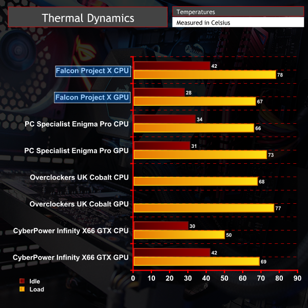 To measure idle temperatures, a reading was taken after having Windows open on the desktop for 30 minutes. A reading under load was taken with Prime 95’s SmallFFt test running alongside 3DMark Fire Strike.