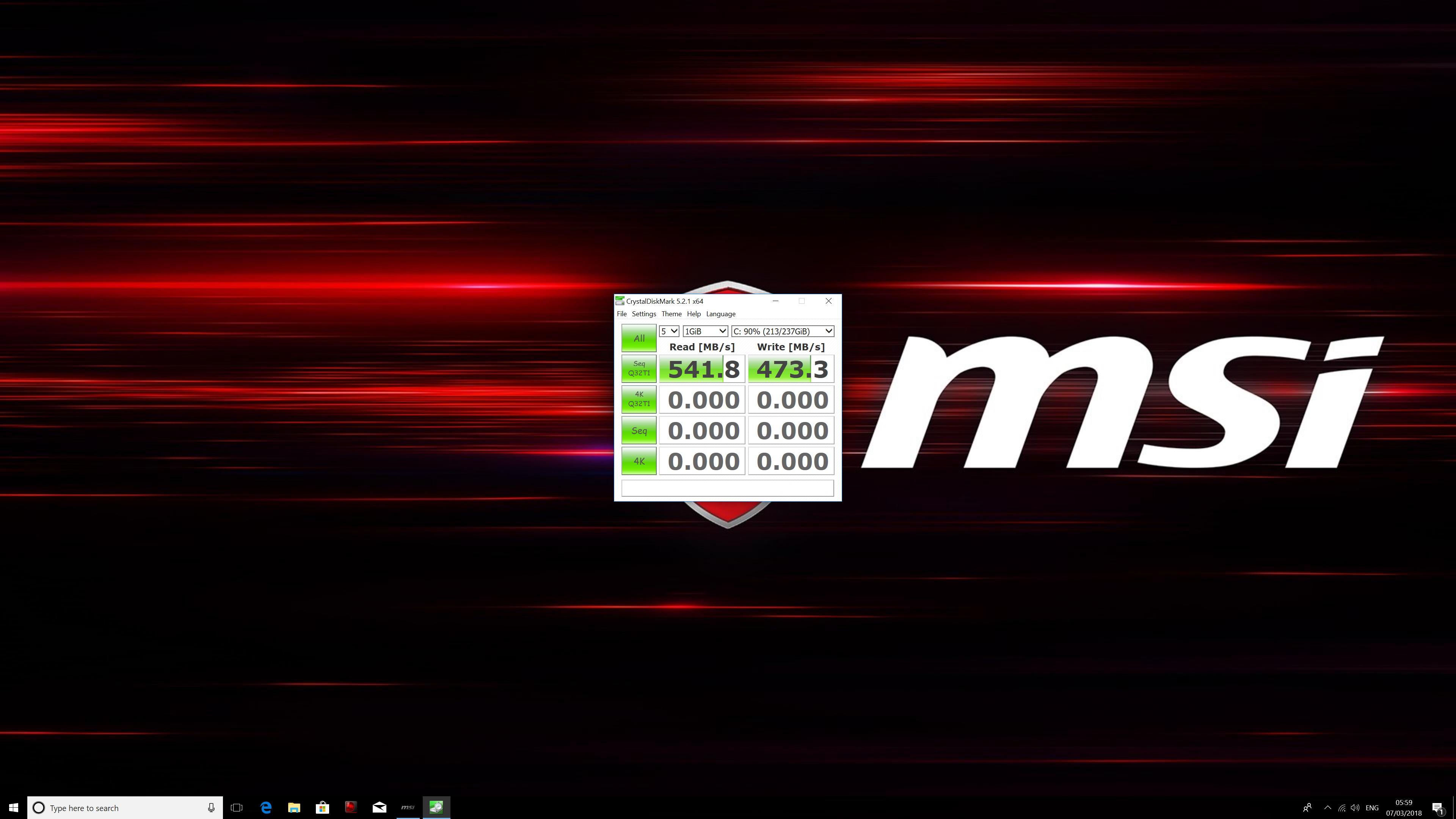 Here we test the MSI Vortex G25‘s storage performance, using CrystalDiskMark 5.1.1.