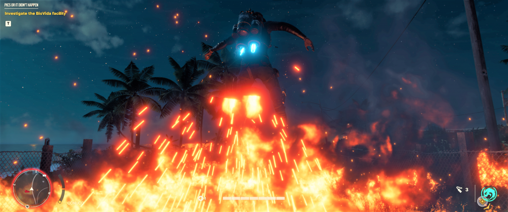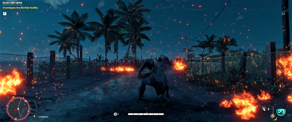 Finally, gameplay. While it may seem odd to talk about gameplay last, the reason for doing so is due to the fact that not much has changed in this respect. The game feels like a Far Cry game through and through – and this isn’t a bad thing. There’s a reason that the open worlds of Far Cry are typically littered with so many camps and random encounters, and that is because the gameplay is fun. The same applies to Far Cry 6. Shooting feels satisfying, and each weapon is able to feel distinct. This is further aided by the various attachments which can be equipped. While not as refined as a Call of Duty (or other competitive FPS) the gameplay is solid and the variety of guns allows for a fun and interesting experience. This is doubly so for the ‘Resolver Weapons’ which offer much greater distinct gameplay, visuals and effects – such as the Tostador Flamethrower, El Susurro nail gun, and the shield/revolver combo weapon. I am actively excited to unlock and try out more of these Resolver Weapons.
