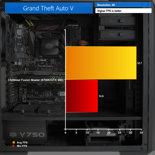These results indicate stability at 1440P and an almost-playable experience at 4K. 4K gaming is a really, really tough task for a video card, and Grand Theft Auto V is a seriously demanding title. You’ll get a reasonable experience by reducing the graphics detail a bit (in practice we’re not sure any anti-aliasing is needed at this resolution).