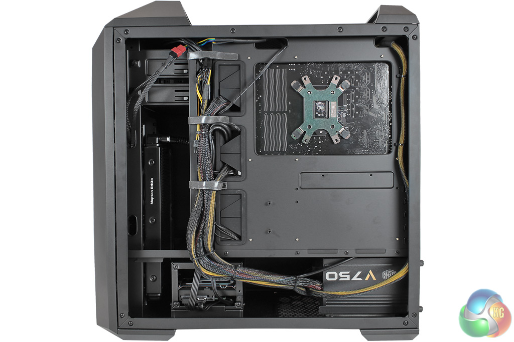 From the rear of the case, you can see Chillblast has done a good job with cable management, using zip ties for the smaller cables and the larger ones held to the side of the case.