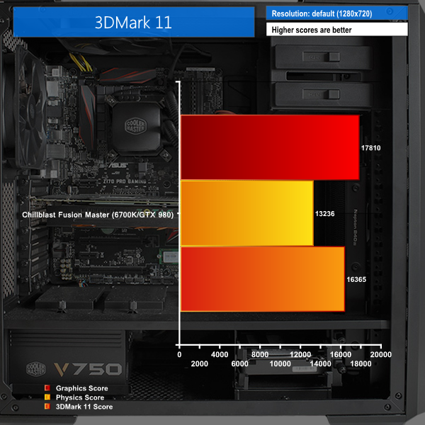 The score is over 1100 points higher than the Core i7-5820k and GTX 970 used in OCUK's Titan Riptide X99 system, which is around a 7 percent improvement. The physics score come out lower, which benefits more from the additional cores with the 5820k, but the graphics score gets a big boost of 2600 points.