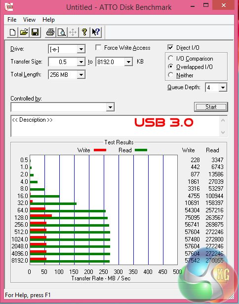 ATTO performance is never as high as CrystalDiskMark, however the results are excellent, hitting a peak of 270 MB/S in the read test.