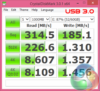 The Gigabyte Z87N-Wifi Motherboard delivers excellent performance from the USB 3.0 ports. It can deliver a sequential read result of almost 315 MB/s.