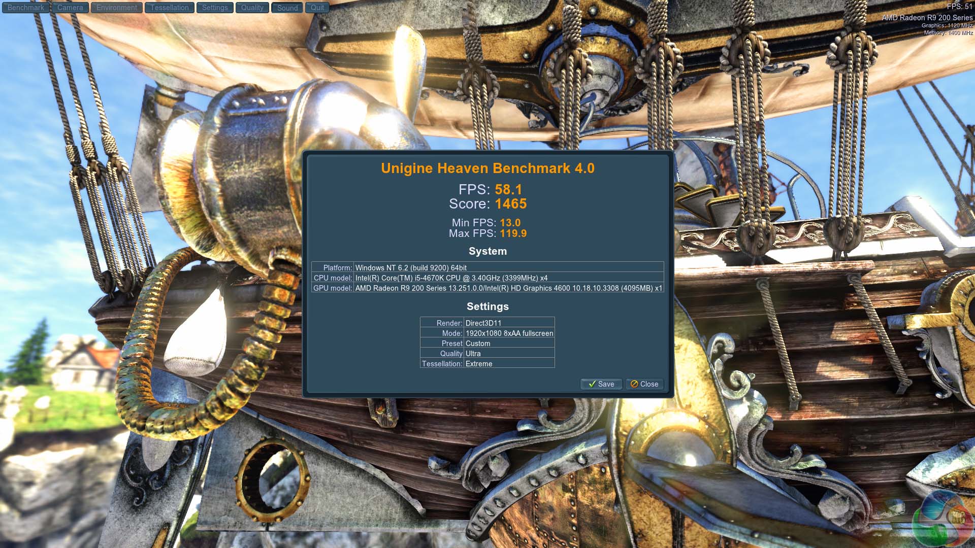 Heaven Benchmark is a DirectX 11 GPU benchmark based on advanced Unigine engine from Unigine Corp. It reveals the enchanting magic of floating islands with a tiny village hidden in the cloudy skies. Interactive mode provides emerging experience of exploring the intricate world of steampunk.