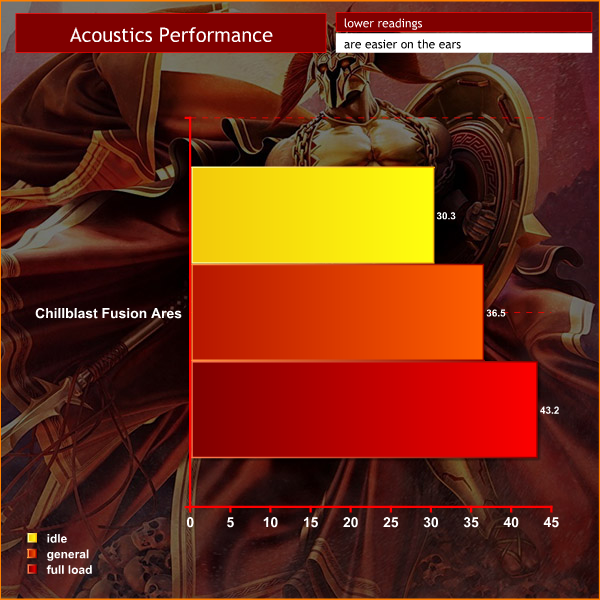 Ambient noise in the room is around 20-25dBa. We measure from a distance of around 1,5 meters from the closed chassis and 4 foot from the ground to mirror a real world situation.