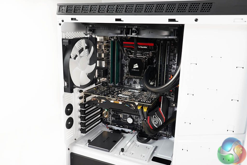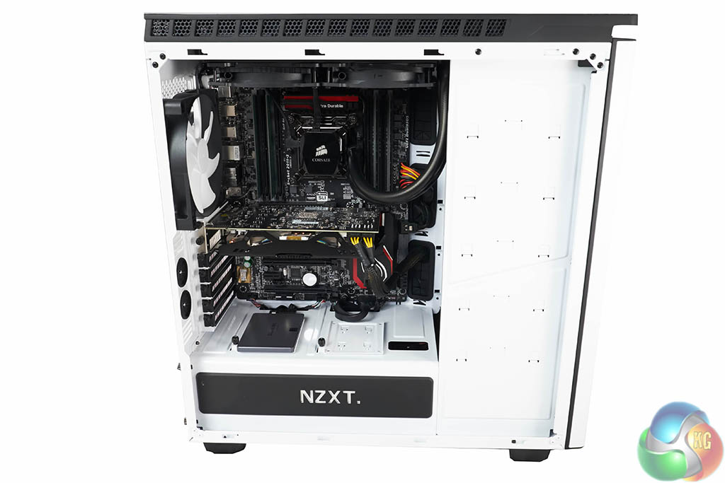 The NZXT H440 chassis is a beauty and the window panel shows off the system build nicely. We like how the case offers some sound proofing on the panels.