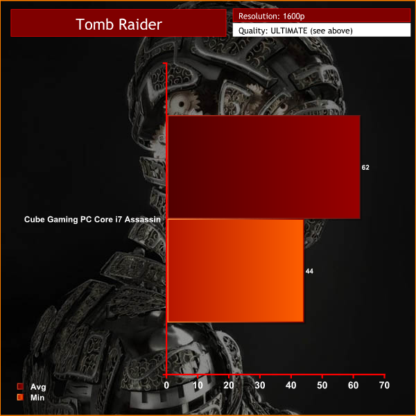A very smooth overall experience, holding well above 40 frames per second at all times. In real world terms, Tomb Raider is extremely smooth and looks fantastic at the highest image quality settings.